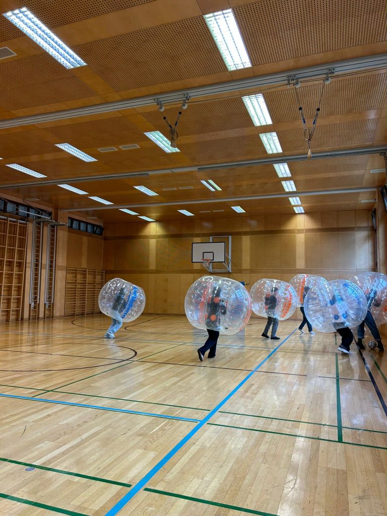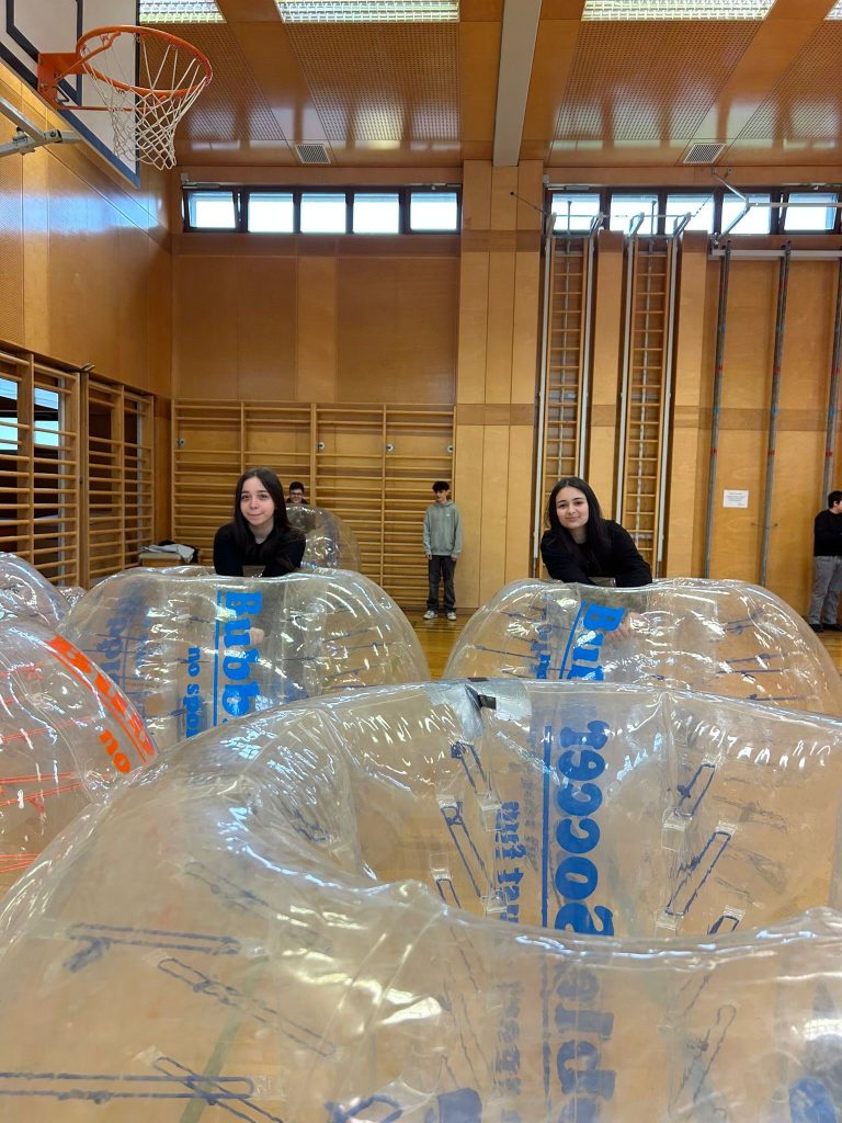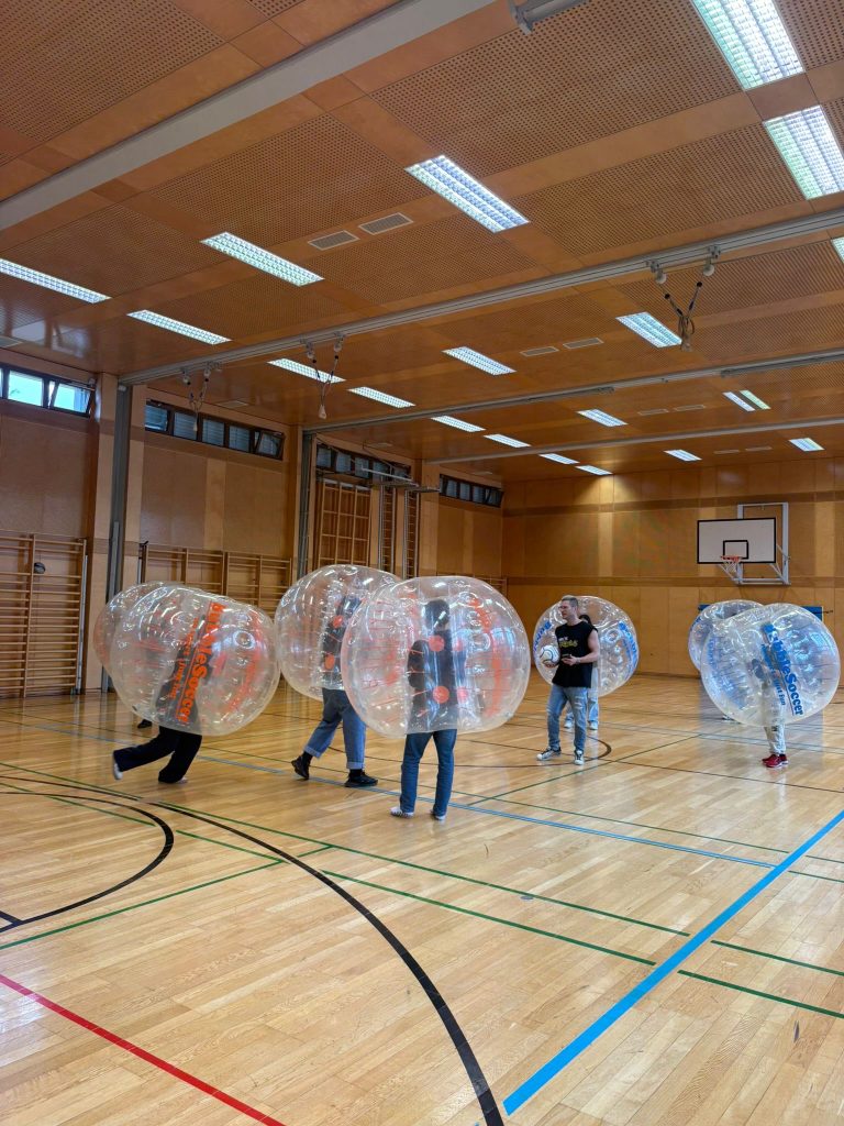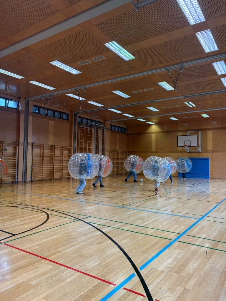 Am 10. April hatte die 4b jede Menge Spaß beim Bubble Soccer. In großen, aufblasbaren Bällen traten die Schülerinnen und Schüler gegeneinander an und konnten sich dabei so richtig austoben. Neben spannenden Spielen standen vor allem Teamgeist, Bewegung und gemeinsames Lachen im Mittelpunkt.